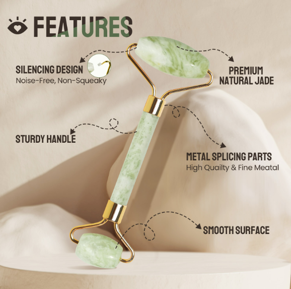 JADE ROLLER: Two-size roller for different areas: smaller rollers for the eye area, larger rollers for the face, neck, waistline and arms. The jade roller massages the facial nerve points to dredge the lymph, promote blood circulation, thereby alleviating skin aging.